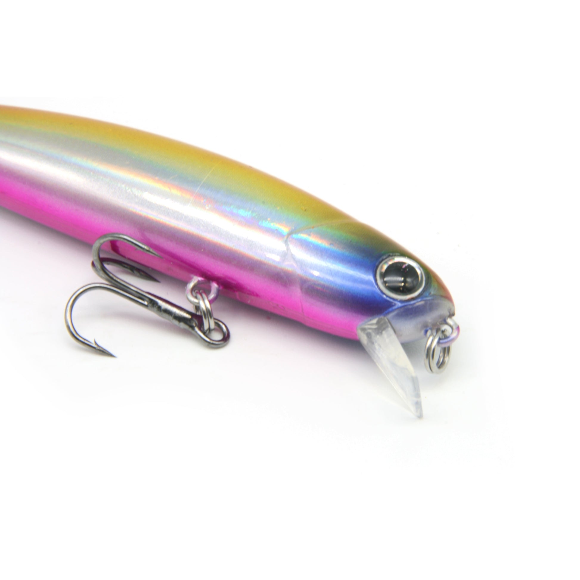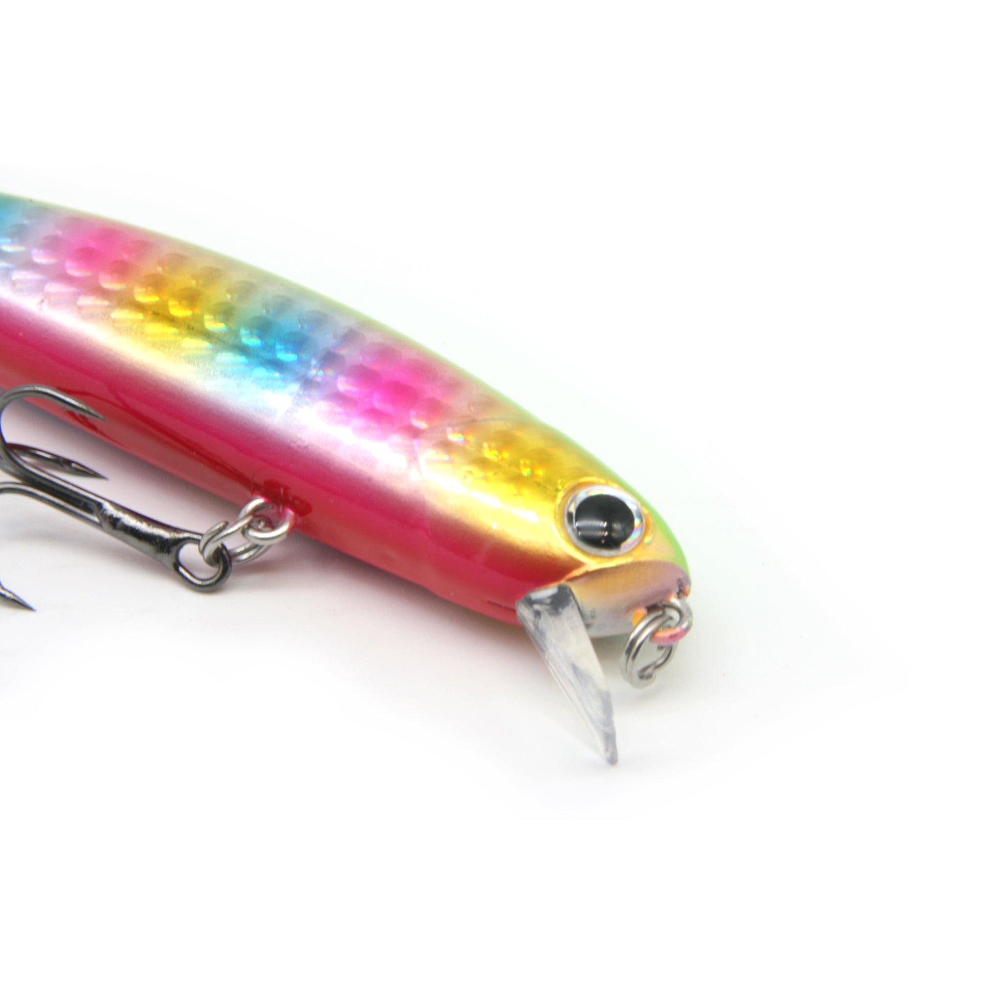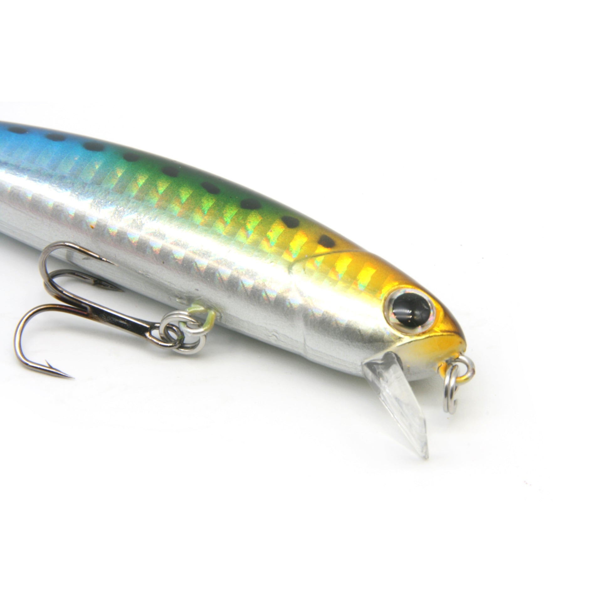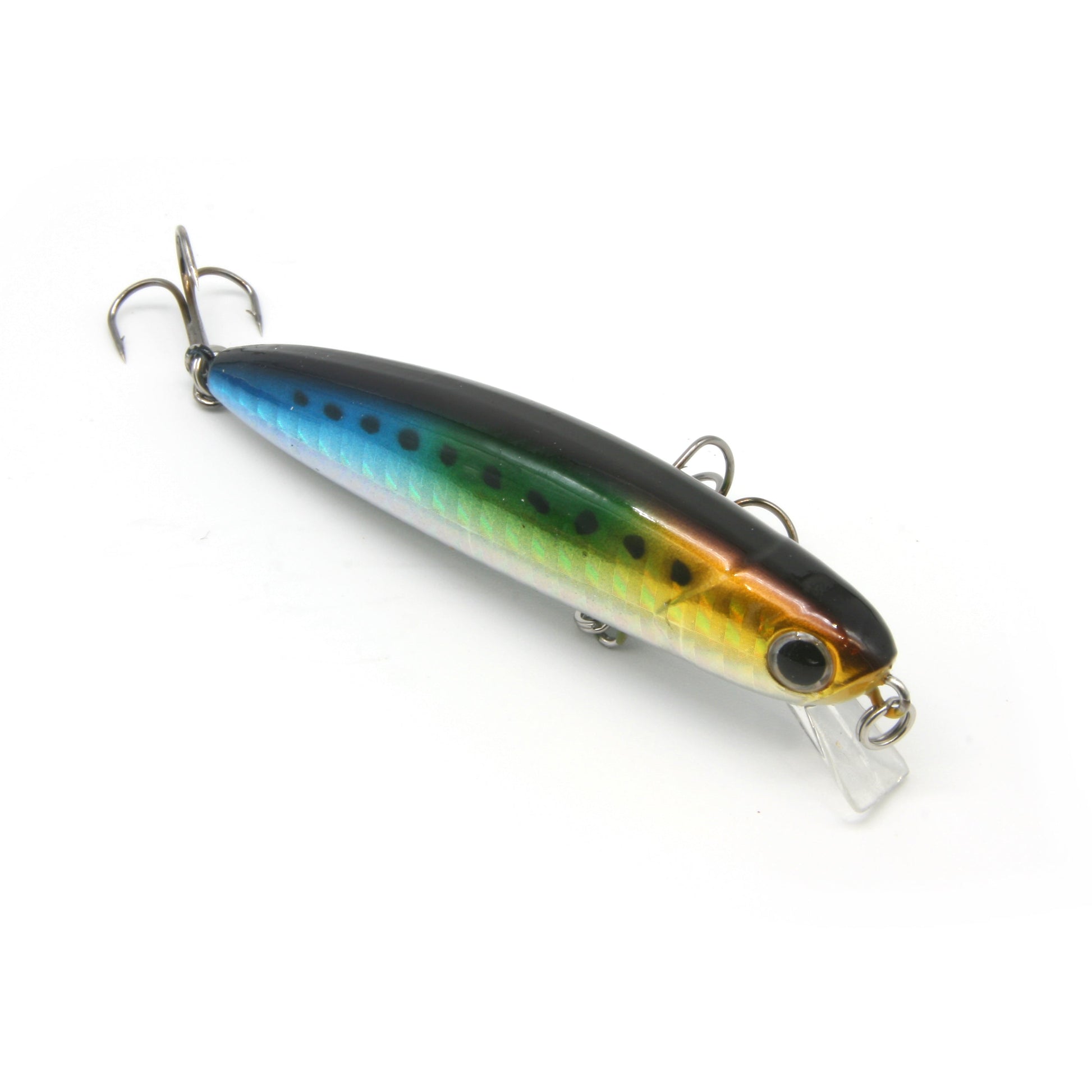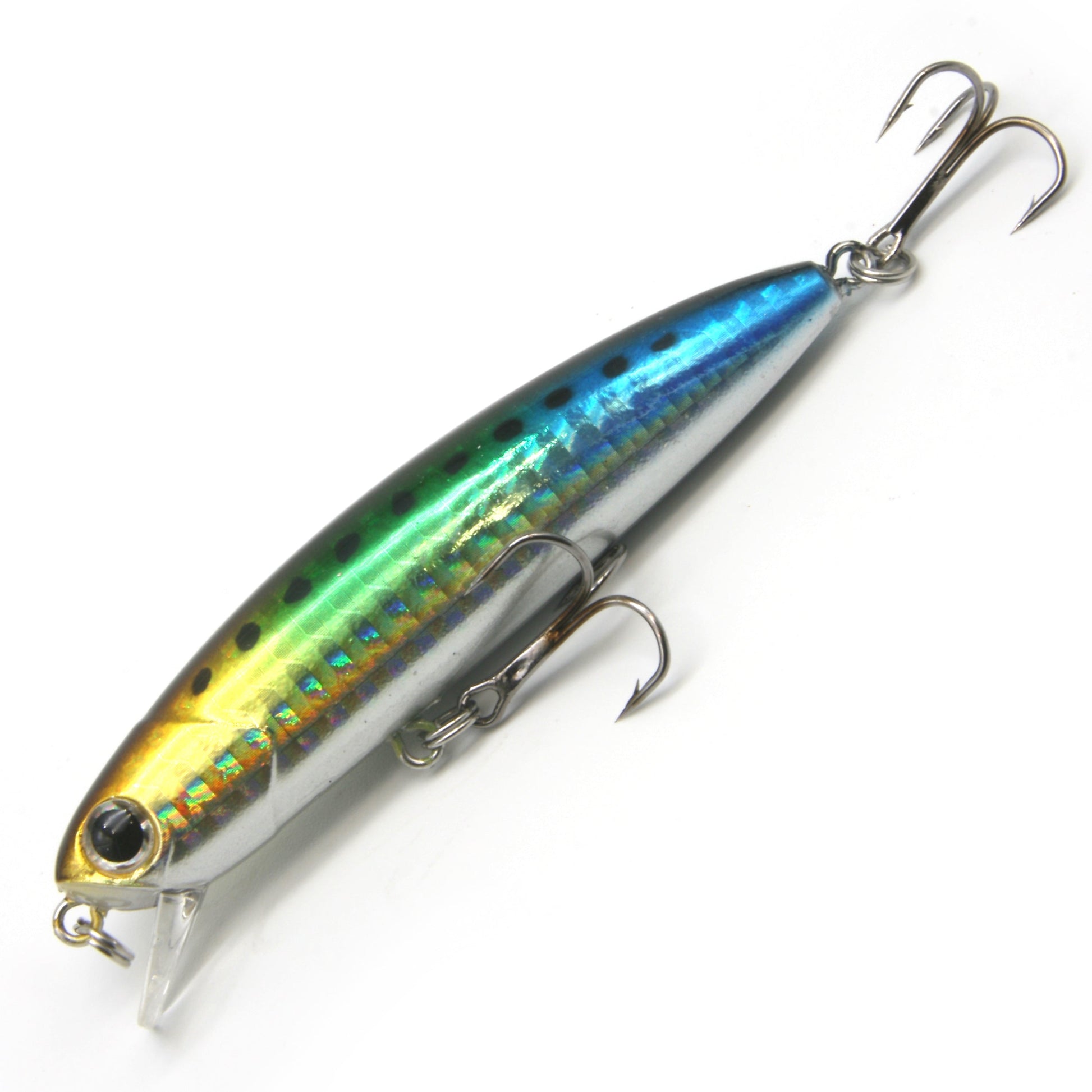 - Chemically sharpened stainless steel treble hooks ensures you never miss a strike.