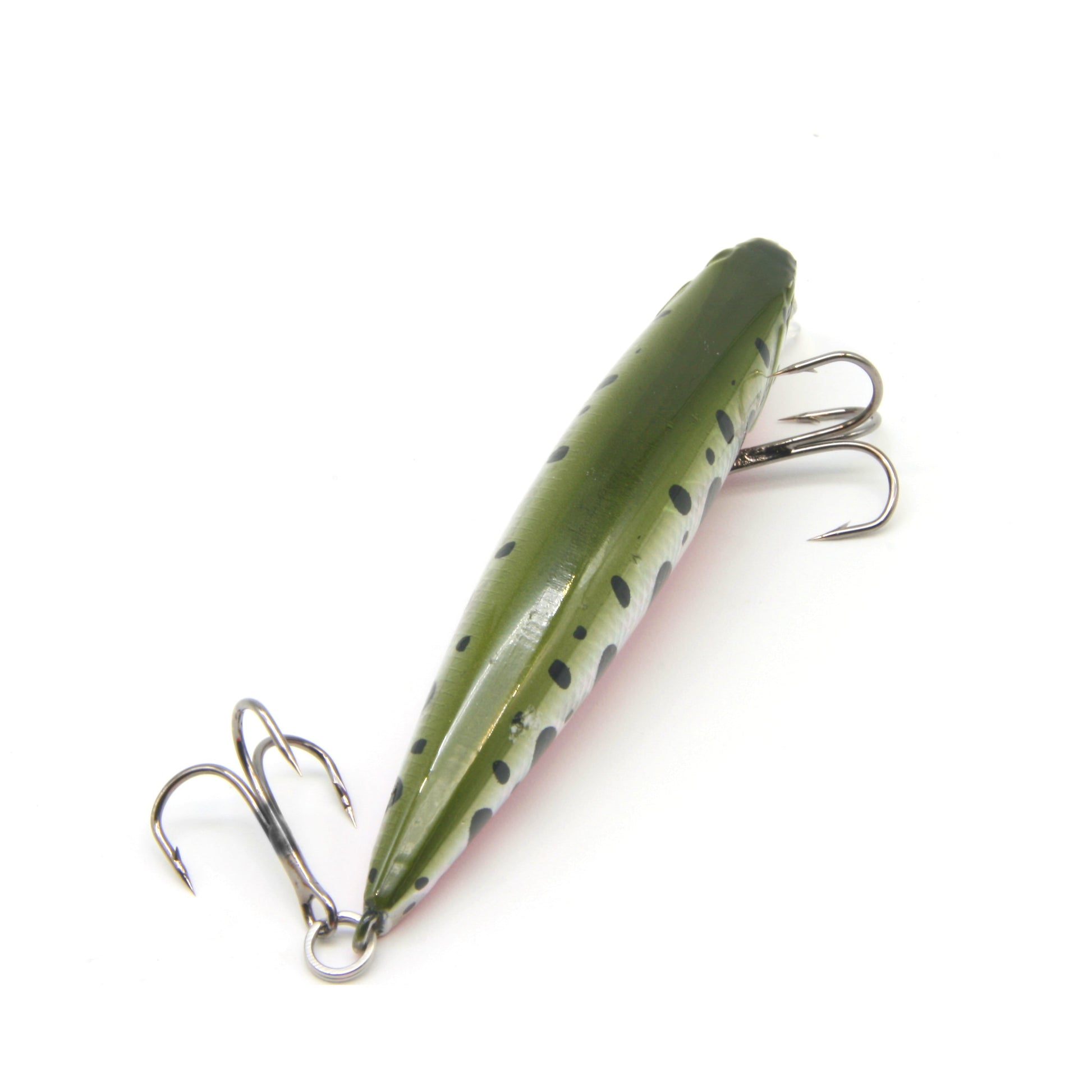 - 3" Body length (from nose to tail, not including trailing treble hook). Weighs 1/3 oz.